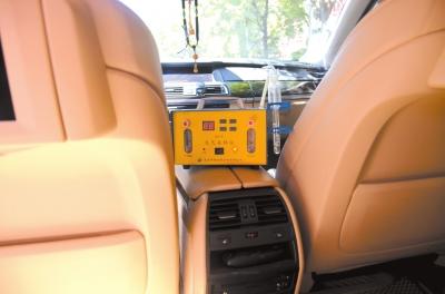 专业仪器在车内进行空气采样。记者赵思衡摄