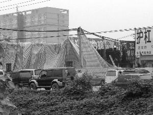昨天上午,记者赶到现场,南区入口处已被封锁,汽配城巡逻员守在门口,禁止车辆行人入内,只允许汽配城保洁人员进入清理现场。记者看到,失火现场周围已拉起警戒线,遍地是水迹。南区已被塑料布遮盖住,只能隐约从东侧看到房屋框架已被烧黑(见图),而西侧的广告牌已被烧得看不清完整字样,失火店铺周边能闻到一股焦煳味儿。