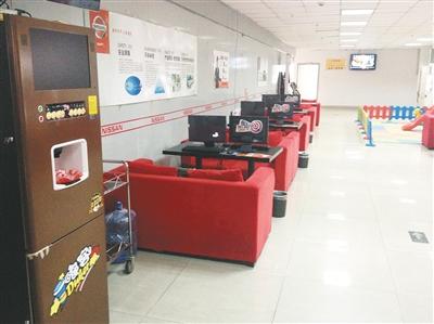 该店客户休息区域较大,同样有自助饮料机、电脑、儿童娱乐区以及无线网络等。但只有二楼VIP区域有专人负责接待,普通客户休息区则很少有服务人员出现。