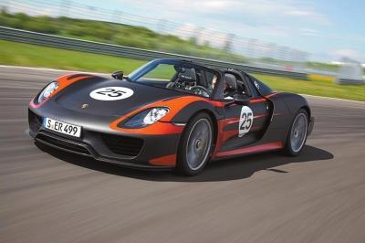 保时捷918Spyder量产版跑车配备最大输出功率为661.4千瓦的混合动力系统,静止到100公里/小时加速仅需2.8秒,百公里油耗3.3升。