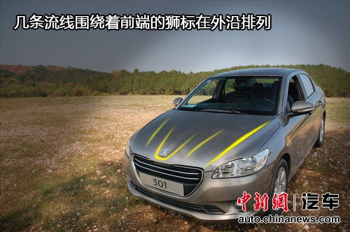 在所有的自然元素中,风和水是大自然最伟大的设计师和工匠。虽然风和水无形, 无味,但它们却创造了301自然的美感。301的前机舱盖,“风中水滴”是它核心的设计特征,几条流线围绕着前端的狮标在外沿排列,就像一滴水击打到前机舱盖上,又沿着狮标被风吹散,慢慢流淌的感觉,使得前机舱盖感觉非常圆润和饱满。