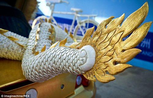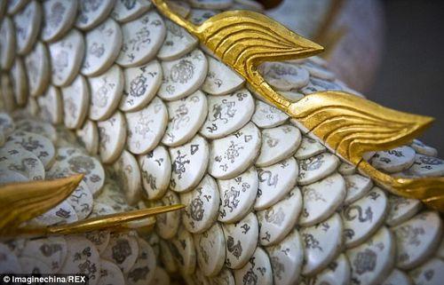 鳞片全部用黄金镶嵌或者涂成金色,全车用牦牛腿骨打磨