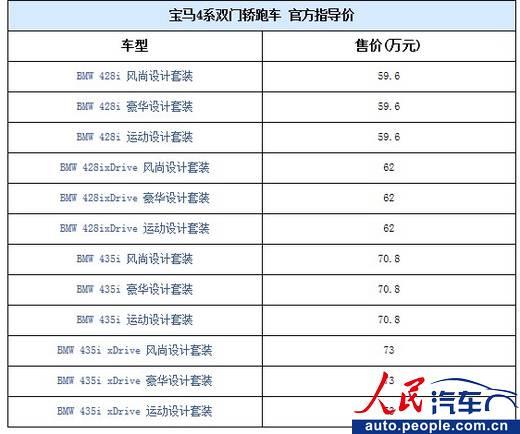 全新宝马4系双门轿跑上市 售59.6万-73万元