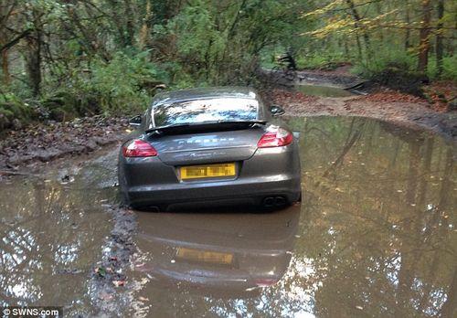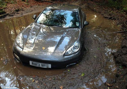 图一,价值10万英镑(97.6万元人民币)的保时捷被困在泥潭中,Andre Wisdom 曾在社交网络上夸耀的爱车,如今身处距离主干道3英里的偏僻森林中的一个泥潭。