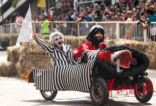 所有参赛汽车都系手工制作,材料从废旧木板铁皮到纸箱泡沫塑料,无奇不有。“赛车”的设计主题更是千奇百怪,有的形似烤肉、红酒瓶,还有的以著名电影动画游戏为主题。“赛车手”的装扮更是无厘头。为符合“搞怪赛车”的主题,他们把自己化装成相关的人物、动物,甚至是食物,“土著”、“猫王”、“热狗”们隆重登场。评委根据“赛车”的搞怪程度、选手的表演水平和驾驶技巧评分。最终,一辆由葡萄酒软木塞组成的疯狂“赛车”夺冠。