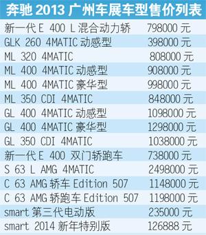 11月21日,梅赛德斯-奔驰宣布:E 400 L混合动力轿车成为豪华车中首款国产混合动力车型,售价为人民币798000元。藉此,梅赛德斯-奔驰将成为第一家在国内生产混合动力车型的豪华车厂商。GLK 260 4MATIC作为首款搭载国产发动机的奔驰车型,让奔驰中国发动机工厂首次“出击”便锋芒毕露。与此同时,涡轮增压柴油发动机随GL 350 CDI 4MATIC和ML 350 CDI 4MATIC正式进入中国市场。而通过搭载最新3.0六缸双涡轮增压汽油发动机,GL级家族带来全新GL 400 4MATIC,M级家族则用ML 320 4MATIC与ML 400 4MATIC车型提升动力表现替代现有车款。继新一代E级车成功上市后,新一代E 400双门轿跑车优雅登场,骄人型格为E级家族增添魅力新选择。代表顶级性能的AMG品牌则带领多位悍将并驾齐驱、各显神通,以无与伦比的动力表现演绎性能巅峰,全新S 63 L AMG 4MATIC以及C 63 AMG Edition 507轿车和轿跑车的登场耀人耳目。此外,令人期待已久的smart 第三代电动版正式开始发售。