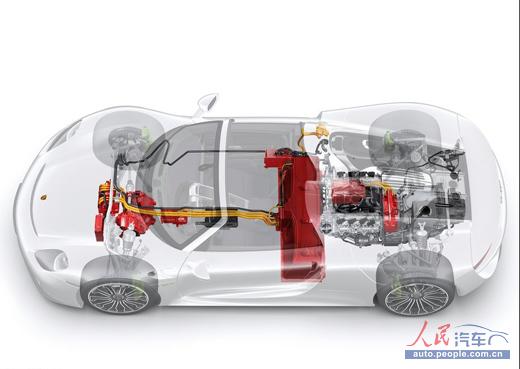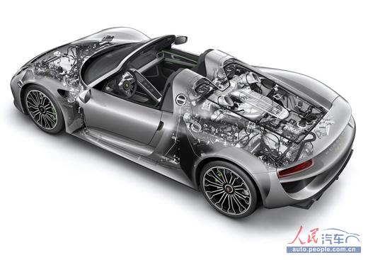 保时捷918采用前后电机配合中置引擎的发动机布局