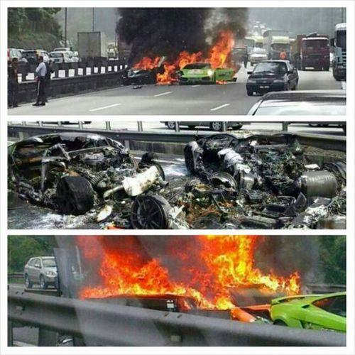 三辆兰博基尼超跑马来西亚撞车后起火