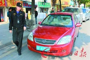 执法人员准备调查可疑蓝牌车。记者刘冉冉摄