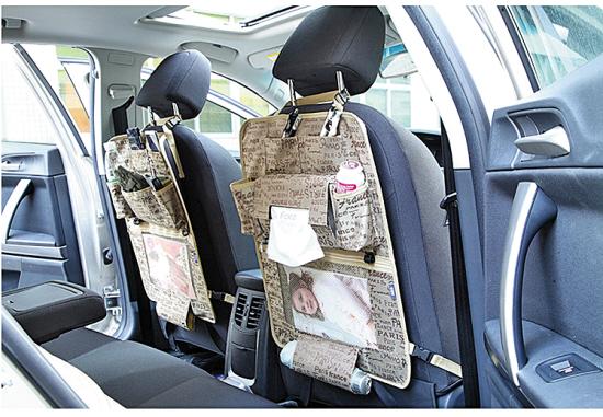 纸巾、杂志、饮料罐等一些零散物品无处存放,放到车内的原来储物袋又紧又不方便,将这个收纳物袋用卡扣绑在座椅上面,又方便,又实用。