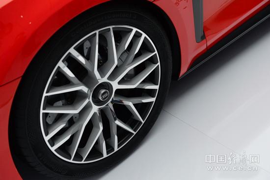 奥迪Sport quattro laserlight概念车前轮。(记者朱津津 摄)