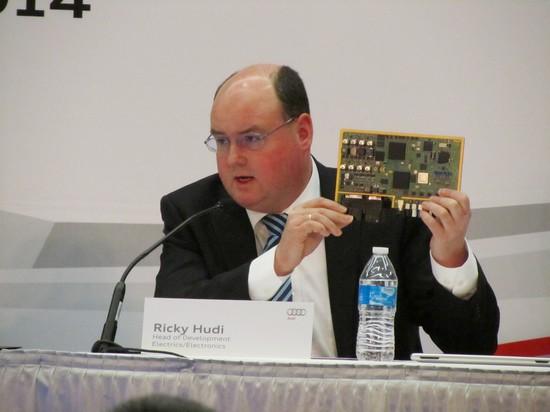 早在2013年的CES上,奥迪就向公众展示过自动驾驶技术,包括远程遥控、自动转向和刹车、自动探测障碍物等。经过一年的研究和提升,奥迪重新定义自动驾驶技术,发布Piloted Driving。该技术仅仅依靠一个与台式机电脑主板差不多大小的控制板以及雷达、传感器模块和摄像头掌控。在2014 CES奥迪前夜发布会上,无人驾驶的奥迪A7驶上舞台中央的时候,所有人都为之惊叹。奥迪公司负责技术和开发的管理董事会成员哈肯贝格博士表示,Piloted Driving技术的先进之处就是将无人驾驶模块轻便化和最小化。