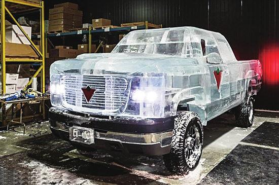 加拿大一家电池公司日前制造出一台完全用5吨冰块打造的卡车,为其生产的电池做抗冻测试。为保证“冰车”的纯洁性,连车牌都是用冰块制作而成。