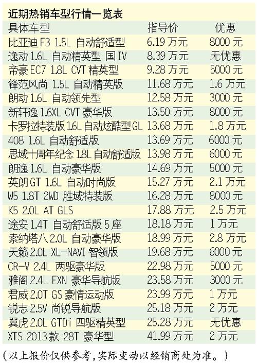 索纳塔八2.4L自动顶级版国IV车型最高让利3.8万元,21.19万元起售,非常划算。其余车型则让利2.3万~3万元左右。