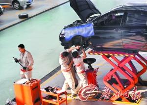为避免车主春节远行途中车辆 “感冒发烧”,4S店维修人员忙着给汽车检测与保养。