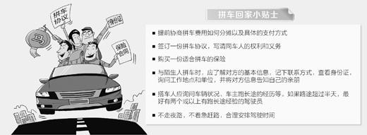 除了和朋友拼车,也有不少人选择和陌生人一起拼车回家。据一家租车网站的工作人员介绍,北京市《关于小客车合乘出行的意见》出台后,“拼车帖”的数量剧增,“比以前的十倍还多”。