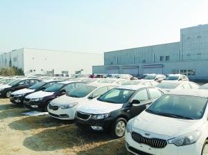 ▲现在 记者在一家东风悦达起亚4S店的露天存车区看到,元旦期间还满满的库存车现在已售出了大半。