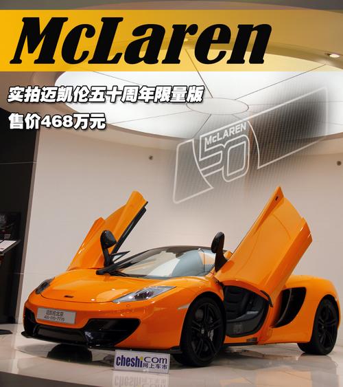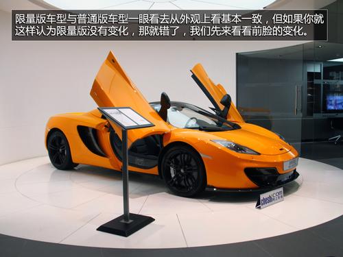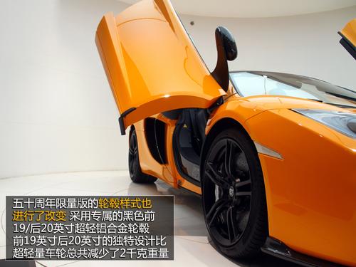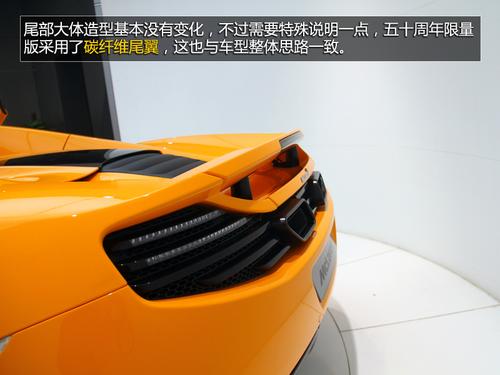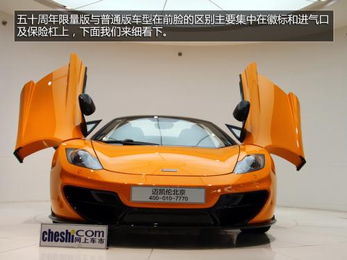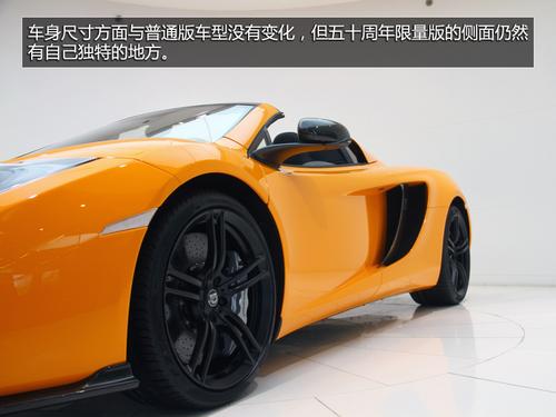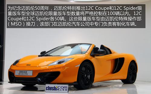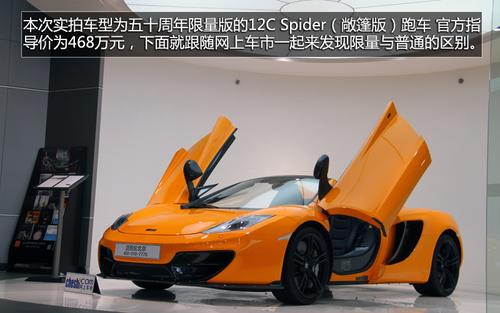已经过去的2013年是迈凯伦品牌五十周年,迈凯伦为了纪念这个五十周年,将生产一款纪念车型,庆祝这个英国品牌五十年来的技术与专业。这款纪念车型就是迈凯伦 12C五十周年限量版,全球迈凯伦五十周年12C的数量将严格控制在100辆以内,12C Coupe和12C Spider各50辆。网上车市日前对限量版车型中的12C Spider车型进行了实拍,这款车型售价为468万。