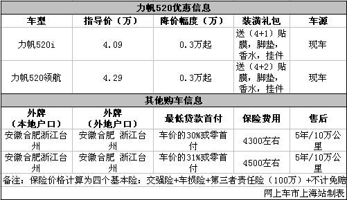 上海:力帆520现金让利0.3万起 赠送装潢礼包
