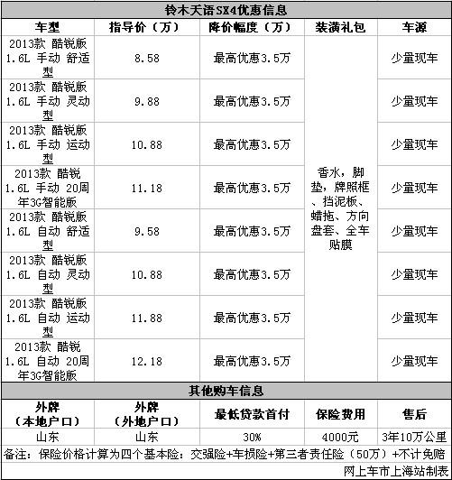 上海:铃木天语SX4最高优惠3.5万元 现车充足