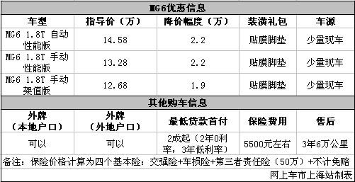 上海:MG6 1.8T最高优惠2.2万元 少量现车销售