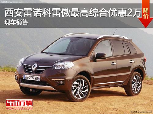 近日,据网上车市西安分站编辑从陕西龙之诺雷诺4S店获悉,2014款雷诺科雷傲2.5L排量车型现金优惠15000,2.0L排量车型现金优惠1万元,均送5000元装潢优惠,现车销售,有意者不妨致电经销商或者到店了解更多信息。