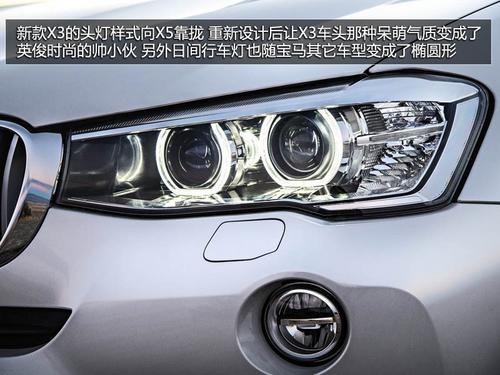 如果说全新X3的前脸外观脱胎换骨并不为过,之前的X3不是不够威猛就是过于呆萌,不过这次宝马为X3带来了全新的视觉效果,虽然不如X5那样霸气,但也足够时尚与潇洒。另外,设计套装的加入也让X3有了更多的性格。