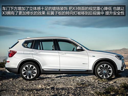 一般中期改款车型的侧面改动都不会很大,宝马X3也是如此,新车车门下方增加了两块面积较大的镀铬装饰,降低了车辆的视觉中心。尺寸为245/45 R19的轮胎仅适合公路驾驶,车主们可不要用这条轮胎去越野。