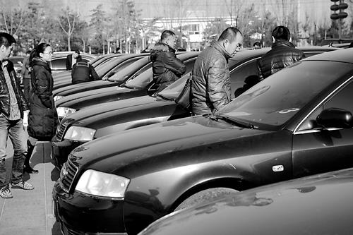 内蒙古呼和浩特首批19辆超标公务车近日公开拍卖,19辆车全部为奥迪汽车。最高成交价为一辆已行驶7.4万多公里的FV7201TFCVTG奥迪车,起拍价17万元,成交价28.1万元;最低成交价为6.6万元。 刘文华 摄