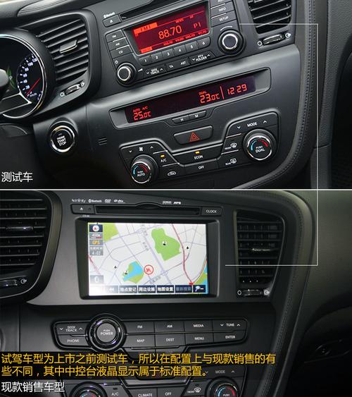 K5 Hybrid车型的中控台导航显示属于标准配置,由于试驾车型为测试车,所以在配置上与现款有些不同,一切都以现款为准。除了这些配置之外,座椅加热以及通风功能、Infinity豪华音响也配备了在混动K5上,这在普通车型上是不具备的。