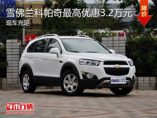 雪佛兰科帕奇最早为上海通用于2007年以进口方引入国内的一款中级SUV车型,在经过几年的不断发展之后,国产版科帕奇也于2011年底正式上市。到目前为止,国产科帕奇拥有2.4L一个排量,共5款车型可供选择。近日,编辑从北京合通雪佛兰4S店获悉,目前店内科帕奇最高优惠3.2万元。详情见下表:
