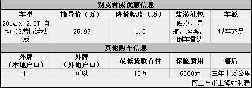 上海:别克君威现优惠让利1.5万元 现车充足