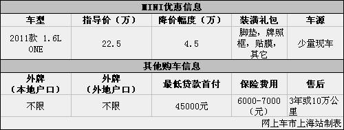 上海:MINI ONE现优惠让利4.5万 送装潢礼包