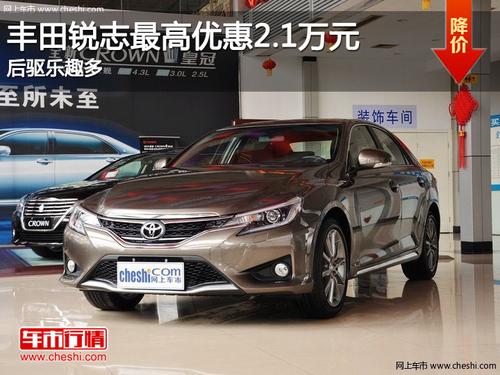 中级运动车锐志以其动感时尚的外观设计,灵活操控的前置后驱方式吸引众多喜爱运动和兼顾家庭需要的消费者。近日,根据网上车市价格监控体系显示,目前全新锐志现正热卖,现金优惠2.1万。具体车型优惠请看下表: