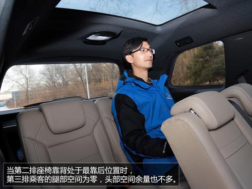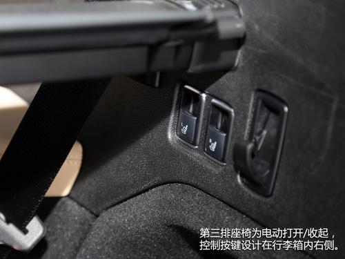 第三排座椅的腿部空间表现,完全依靠第二排座椅的靠背角度决定,当座椅靠背处于最靠后状态时,第三排乘坐1米82的人员腿部基本没有余量,头部一指的空间剩余也只处在可以接受的状态。新GL的行李箱空间在使用第三排座椅的状态下,可用容积比较有限,但基本可以应付日常使用的需求。