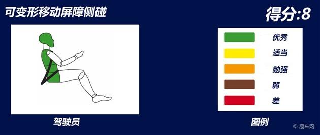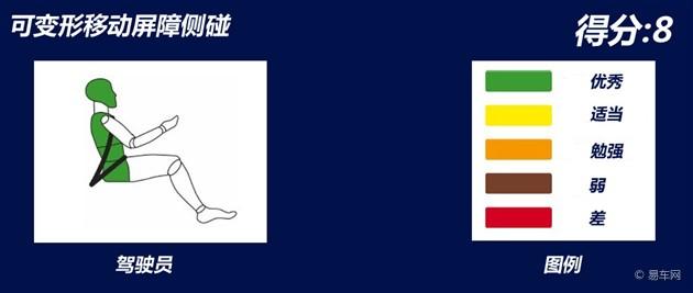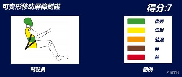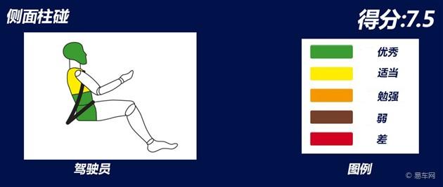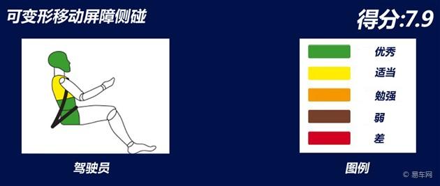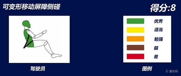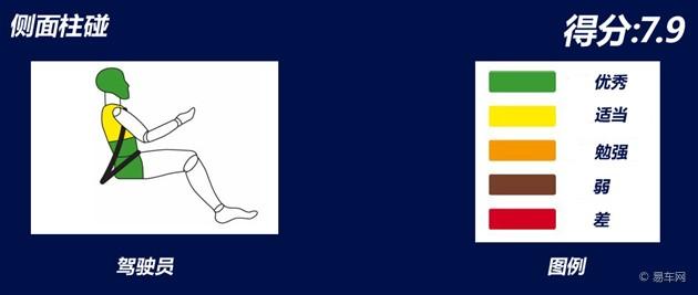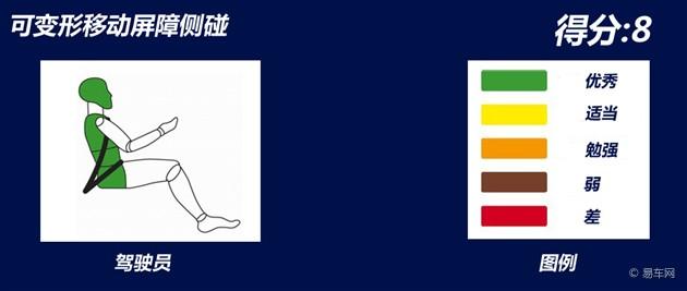 侧面撞击时,由于配有车身侧面及侧面头部安全气囊,因此驾驶员保护或得到了全优成绩。