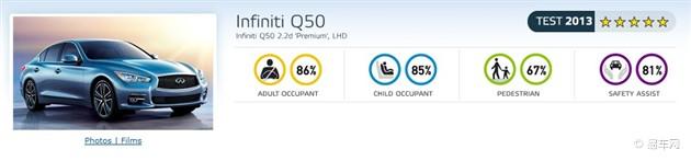 从测试结果上看,Q50对驾驶员及儿童的保护均超过了85%达到了GOOD优秀成绩,这即使放在获欧5星碰撞的其他车辆当中也是很难得的成绩,因为其他车辆在儿童乘坐的保护上很难达到80%以上。虽然是一款定位运动风格的轿车,但Q50在儿童安全保护上同样出色。