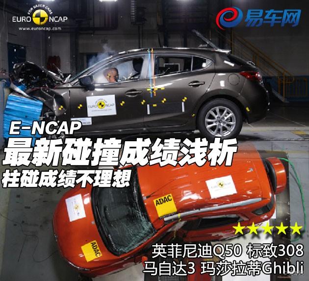 参与互动(0)近日E-NCAP公布了最新一轮的碰撞测试成绩。这一轮的车型中与国内关系相对密切的有马自达3、福特翼搏、标致308、英菲尼迪Q50、宝马i3、日产Note、玛莎拉蒂Ghibli。其中获得五星评价的是马自达3、标致308、英菲尼迪Q50和玛莎拉蒂Ghibli,其余车型均为四星评价。另外我们还发现,本次测试成绩中,仅有玛莎拉蒂Ghibli和日产Note的柱碰测试成绩令人满意,其它车型的成绩均不理想。下面我们来仔细看看各个测试项目的得分情况。