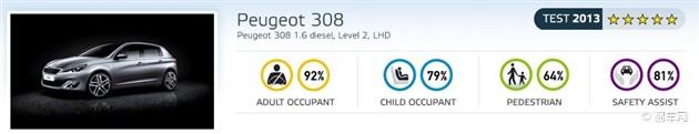 标致308在欧洲新车安全评鉴协会测评中,获得了5颗星的优异成绩。其实综合来看,在每一项测试中,标致308并没有什么惊艳的表现,但也没有哪一项出现明显短板,或许就是这样的均衡使它最终获得了5颗星的评价。