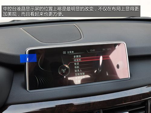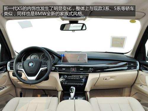 新一代X5内饰也发生了明显变化,整体上与现款3系等轿车类似,同样也是BMW全新的家族式风格。中控台液晶显示屏的位置上移是最明显的改变,不仅在布局上显得更加美观,而且看起来也更方便。空调面板和音响控制区同样采用宝马一贯的设计风格,布局简洁规整,操作起来也很顺手。配备双区自动空调系统,带有座椅加热功能。
