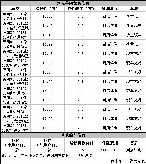 参与互动(0)日前网上车市上海站从上海协通别克4S店了解到,目前该店英朗车型最高优惠2.6万元,具体信息见下表: