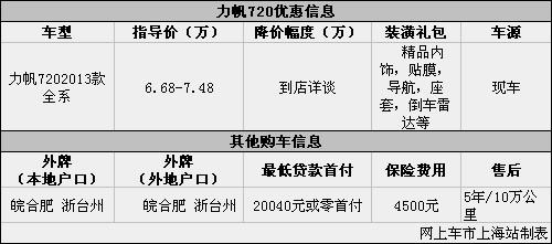 上海:力帆720优惠到店详谈 购车送装潢礼包