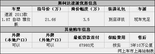 上海:斯柯达速派现优惠3.5万元 现车充足