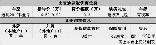 上海:比亚迪速锐优惠到店详谈 购车送装潢礼包