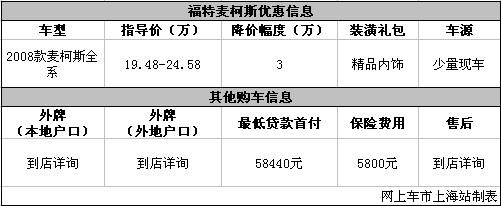 上海:麦柯斯现金降3万 送装潢礼包少量现车