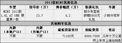 上海:MINI ONE限量第一款优惠让利4.2万元