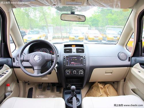 内饰方面:天语SX4中规中矩的驾驶台大量运用了黑色作为座舱的主色调,配合着金属亮银色的装饰条,凸显出了它的运动天性。中控台上的音响及空调控制面板与中控台本身是一个整体,感觉好像是直接在中控台上雕刻出来的,而不像传统轿车的控制面板那样有强烈的“安装感”。带有音响控制按键的多功能方向盘,无论是选材还是做工都无可挑剔,带给驾驶员非常舒适自如的握感。而像音响按键、空调旋钮等遍布车内的圆形元素则十分符合带有运动基因的整体风格。