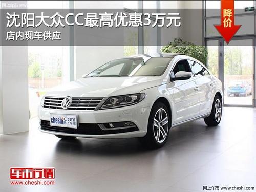 近日,编辑从一汽大众沈阳和昊4S店了解到,近期内到店购大众CC车型,最高现金优惠3万元,店内现车供应。具体优惠详情咨询经销商。