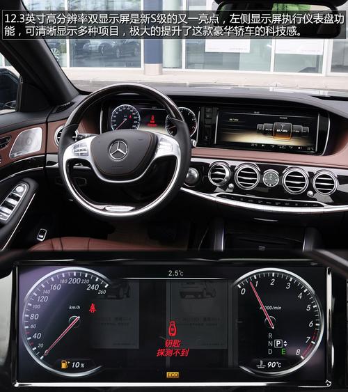 采用了大量实木面板及镀铬饰条,精巧的设计、浑然天成的整体布局,这里的一切都在诠释着“豪华”二字。12.3英寸高分辨率双显示屏是新S级的又一亮点,左侧显示屏执行仪表盘功能,可显示多种项目,极大提升了这款豪华轿车的科技感。中央显示屏带有单屏双显像功能,除了导航、全景影像等功能外,还可以实现车辆设定,包括座椅、氛围灯等。
