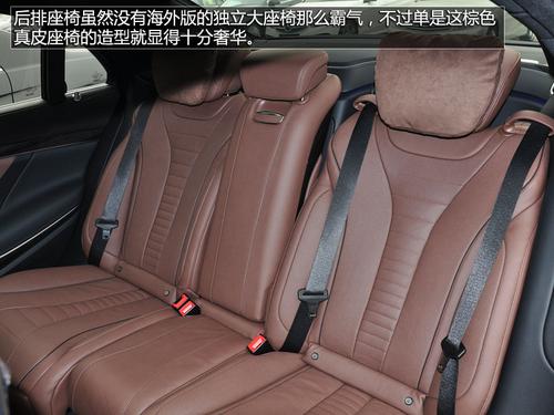 重新设计的COMAND系统可通过设置快捷键来自行定制适合自己的快捷菜单,除了拨号功能外,可通过这些按键操控多项车体功能,比如运动/舒适模式切换、导航、广播、媒体、电话等。后排座椅虽然没有海外版的独立大座椅那么霸气,不过单是这棕色真皮座椅的造型就显得十分奢华。